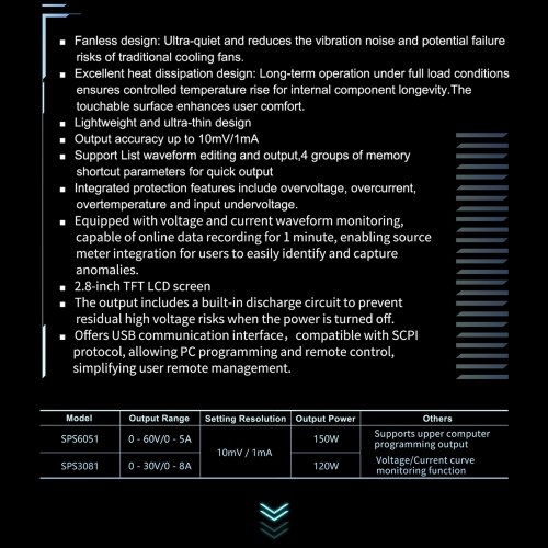 Silent Fanless Design: Achieve ultra-quiet operation with the OWON SPS6051 silent fanless series, ideal for noise-sensitive environments.