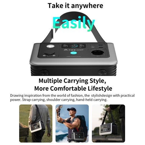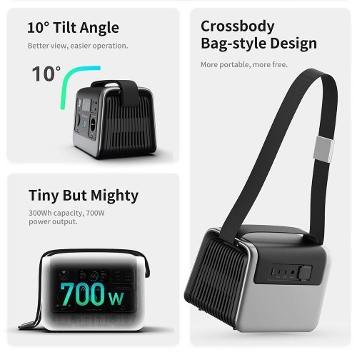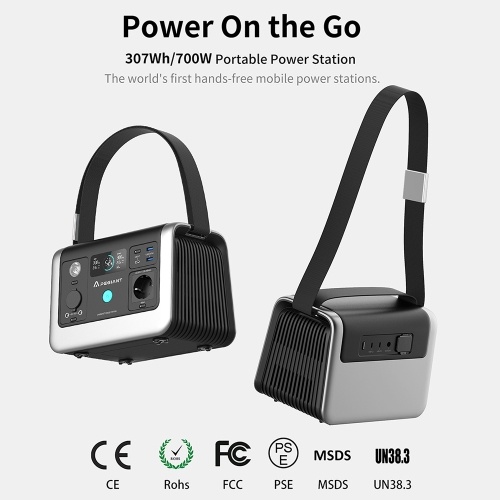 Pegiant MItos Y700 Portable Power Station 700W 307Wh Power Supply LiFePO4 Battery 68mins Fast Charging with Crossbody Bag-Style Design for Outdoor Camping RV Emergency Power Supply