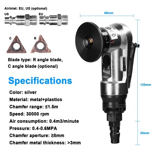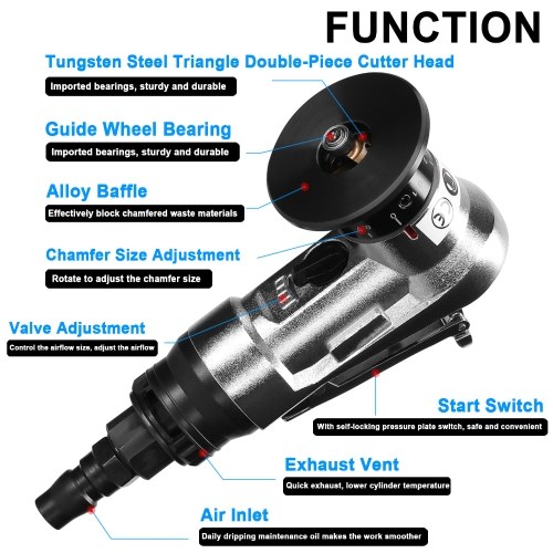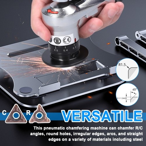Versatile: This pneumatic chamfering machine can chamfer R/C angles, round holes, irregular edges, arcs, and straight edges on a variety of materials including steel, aluminum, copper, acrylic, and wood.