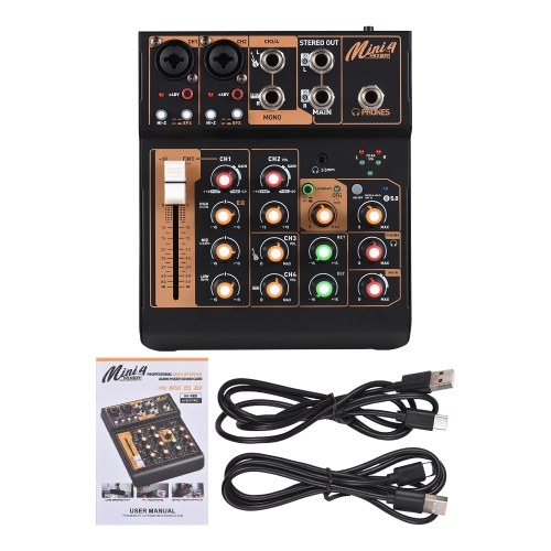 【Noise-Free Performance】: Our mixer boasts a low-noise floor, ensuring minimal interference during recordings and performances. The soundboard utilizes state-of-the-art technology to deliver superior audio quality, eliminating unwanted background noise and distortion. Take your audio production to the next level with our reliable and high-performing 4-channel USB mixing console.