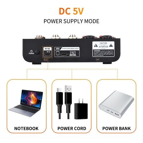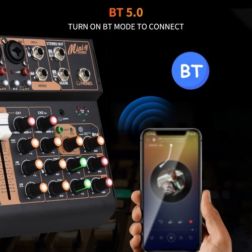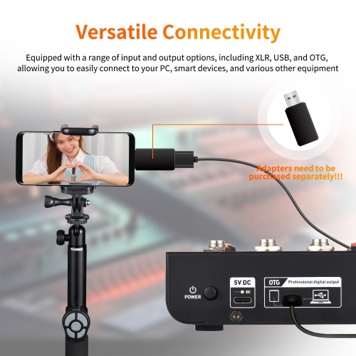 【Versatile Connectivity】: Our mini 4-channel audio mixer is equipped with a range of input and output options, including XLR, USB, and OTG, allowing you to easily connect to your PC, smart devices, and various other equipment. Whether you're recording in the studio, mixing live performances, or DJing at a party, this mixer is your perfect choice.