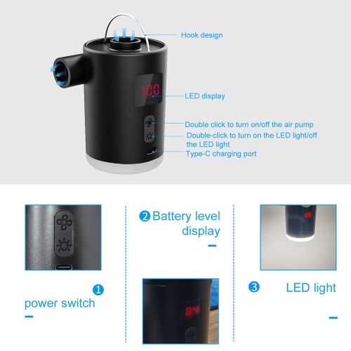 Multi-functional LED Lighting: Enhance your outdoor experience with the included LED light feature. With three different lighting modes - white light, yellow light, and flashing mode - it caters to your diverse lighting needs. Whether you need a stable source of illumination or a flashing signal for emergencies, this pump has got you covered.