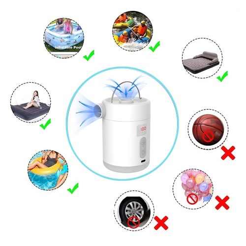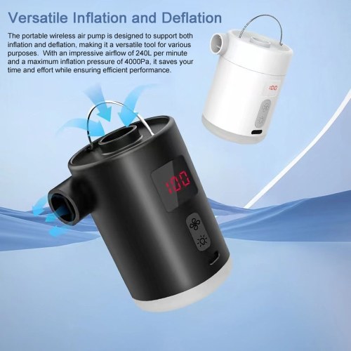 Versatile Inflation and Deflation: The portable wireless air pump is designed to support both inflation and deflation, making it a versatile tool for various purposes. With an impressive airflow of 240L per minute and a maximum inflation pressure of 4000Pa, it saves your time and effort while ensuring efficient performance.