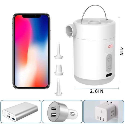 Wide Application: The air pump comes with three different nozzles, making it compatible with various inflatables such as swimming rings, inflatable beds, air mattresses, and inflatable pools. It is a versatile tool that provides convenience for all your inflation needs.