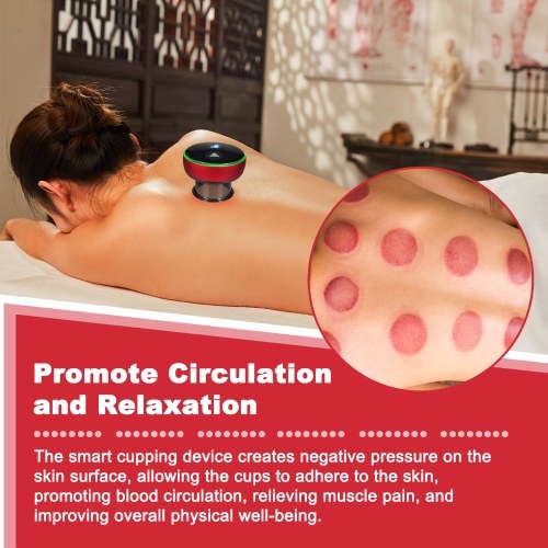 Promote Circulation and Relaxation: The smart cupping device creates negative pressure on the skin surface, allowing the cups to adhere to the skin, promoting blood circulation, relieving muscle pain, and improving overall physical well-being.
