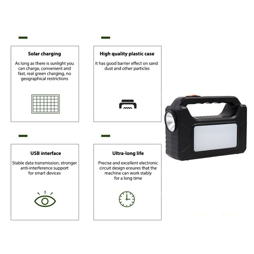 【Multifunctional and Portable】: This solar-powered flashlight is a versatile and compact system power source that can accompany you in challenging extreme environments. It's perfect for sudden power outages, emergency lighting, car breakdowns, repair lighting, outdoor camping lighting, late-night walks, and daily lighting.
