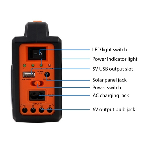 Function: Backup power supply, 3 6V light bulbs can illuminate when power is off, USB phone charging