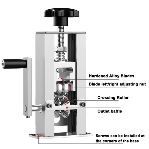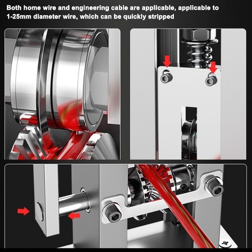 【Easy to Use】: After placing the wire, adjust the knob to clamp the wire to the blade and pull the wire to move it past the wire feed wheel. After passing through the stripping machine, the outer skin of the wire is stripped and the wirecore can be removed. Multi-hole feeder plate, convenient for different thicknesses of cables.