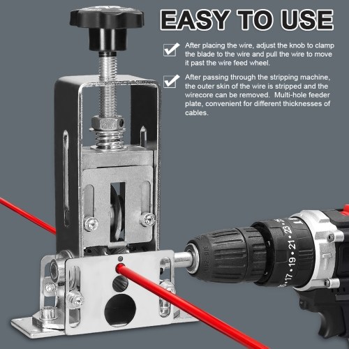 【Easy to Use】: After placing the wire, adjust the knob to clamp the blade to the wire and pull the wire to move it past the wire feed wheel. After passing through the stripping machine, the outer skin of the wire is stripped and the wirecore can be removed. Multi-hole feeder plate, convenient for different thicknesses of cables.