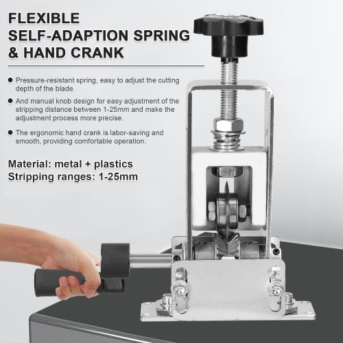【Flexible Self-adaption Spring & Hand Crank】: Pressure-resistant spring, easy to adjust the cutting depth of the blade. And manual knob design for easy adjustment of the stripping distance between 1-25mm and make the adjustment process more precise. The ergonomic hand crank is labor-saving and smooth, providing comfortable operation.