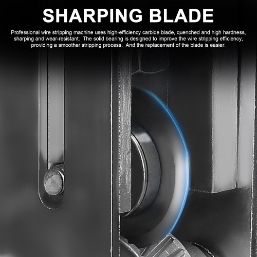 【Sharping Blade】: Professional wire stripping machine uses high-efficiency carbide blade, quenched and high hardness, sharping and wear-resistant. The solid bearing is designed to improve the wire stripping efficiency, providing a smoother stripping process. And the replacement of the blade is easier.