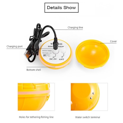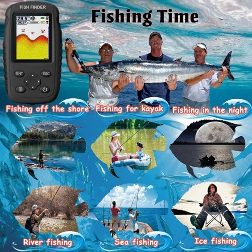 LED colorful display, the detailed information collected from the sensor, includes water temperature, fish icons, sensor power indicator and depth range, so you can read in the dark,