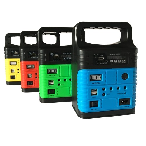 This solar generator with illumination function, which is convenient to meet the different lighting needs of customers, which has LED highlight light on the side for remotely illumination, and the front side can be connected to light bulbs for illumination. And it also can be used as a radio, which has MP3, BT, memory card and music playback function to meet your demands. Equipped with polycrystalline solar panels, suitable for home emergency illumination, camping, outdoor activities, mobilephone recharging, street vending and others.
