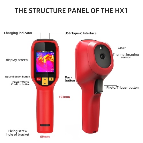 The Thermal Imager is a practical diagnostic tool, offers unparalleled accuracy and functionality for various applications. With a 240*240 infrared resolution and 15 distinct pseudo-color modes, this thermal imager delivers crisp images that reveal subtle temperature variations. Supports center point temperature measurement, high and low temperature tracking, etc. Easy and quick to use, with photo taking, video recording, and laser localization functions. It can simultaneously detect the temperature of N points, through the visualization of the thermal imaging to locate the temperature measurement point at a time. Suitable for firefighting, archaeology, transportation, agriculture, geology, energy, smelting, electronics manufacturing, etc. It is suitable for electricians and maintenance technicians, and can be used to quickly locate problem areas.