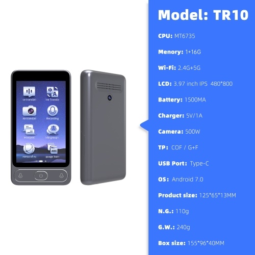5. Long-lasting Battery Life & High-quality Imaging: Never worry about running out of power during important conversations or trips. The TR10 is backed by a 1500mAh battery, providing 3-4 hours of continuous operation. Its 5MP rear camera captures clear images for precise translations, making it an ideal travel and business companion.