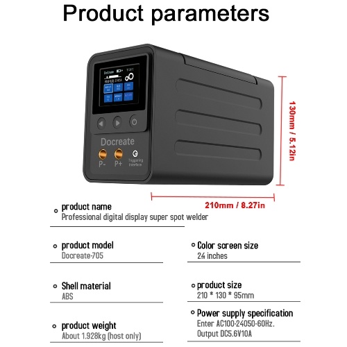This spots welding machine features a 2.4-inch 320*240 high-resolution color screen for clear and intuitive operation, allowing for precise adjustments and easy navigation through various settings. Features a powerful 10.08kW output, 1800A strong current, and 3326J high energy, with 10A fast recharging capability, delivering exceptional welding performance and efficiency. Equipped with a 2.8V supercapacitor that provides superior discharge capacity and stability, ensuring consistent and reliable welding results. Supports soldering 0.6mm nickel sheet.