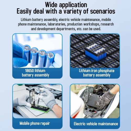 【Wide Applications】: Suitable for a variety of applications, including lithium battery assemblies, lithium iron phosphate battery assemblies, electric vehicle repairs, smartphone repairs, laboratory uses, and production workshops, making it a versatile tool for professional and hobbyist users alike.