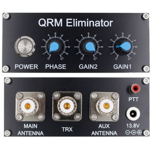 QRM canceller is inserted from the into the feed line of the antenna without any other modifications to the radio. The box has built-in PTT controls, allowing the eliminator to stay connected during transfer. However, an additional auxiliary receiving antenna is required, such as a 2m antenna or just a few meters of wire in the shed. The two antennas pick up unwanted signals, causing them to be out of phase. The QRM canceller now allows adjustment of the phase angle as well as amplification to cancel unwanted signals before they reach the receiver front end.