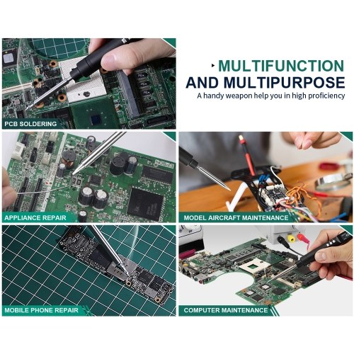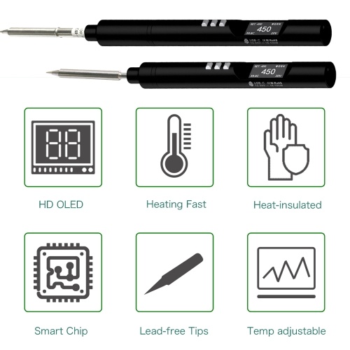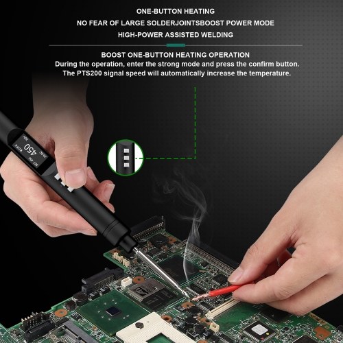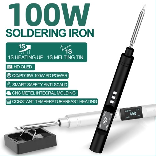【Support PD2.0/PD3.0 Protocol】: The soldering iron is designed for PD2.0/PD3.0 protocol and easily supports 65W. When using a 100W powersupply, the working power can also reach 100W. (Need to be used with a customized iron bit, the standard iron bit can only reach up to 65W).
