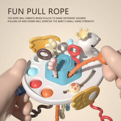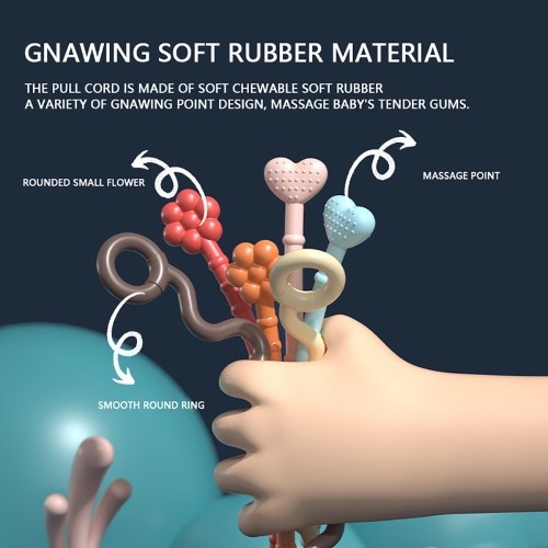 【Educational Toys for Babies】The pull string toy with different textures and colors has many ways to play, such as pulling up and down, pressing, chewing and so on, which can stimulate developing motor skills, hand-eye coordination and sensory exploration of babies.