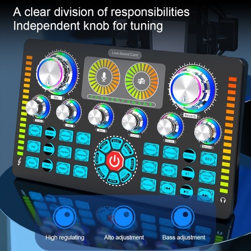 【Compact and Portable Design】: Designed with portability in mind, this sound card mixer is lightweight and compact, making it perfect for on-the-go musicians and streamers. Its durable construction ensures long-lasting performance, while the ergonomic layout allows for easy operation. Whether you are a DJ, singer, or content creator, this versatile sound card mixer is an essential addition to your streaming accessories and DJ equipment collection. Elevate your audio game with this reliable and feature-packed soundboard.