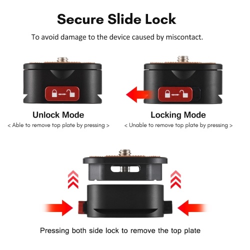 【Side Lock Design 】The innovative side lock design allows for quick and easy release of the top plate, making it effortless to remove or attach your camera with just a simple press of the locks.