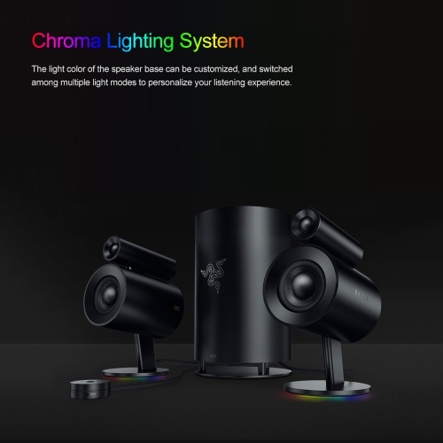 With the Razer Nommo Pro's downward firing subwoofer, you get powerful, unrestricted bass for desk-shaking, room-thumping low-end sound on tap. Turn it up when blasting your favorite electro hits or take it down a notch for late night gaming.