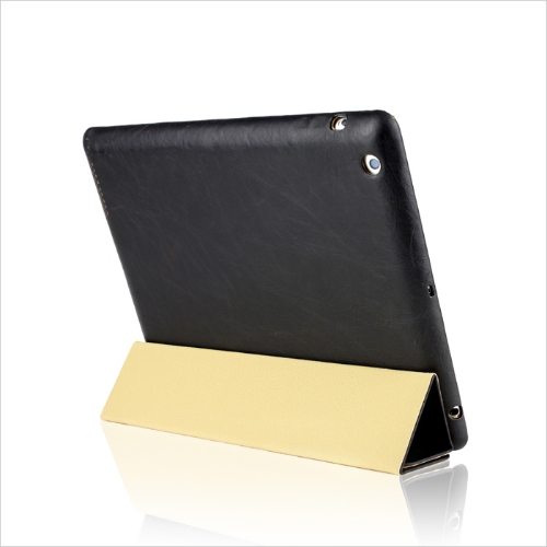 Jisoncase Real Leather Magnetic Smart Cover Protective Case Stand for iPad 4 3 2 Wake-up Sleep Vintage Black
