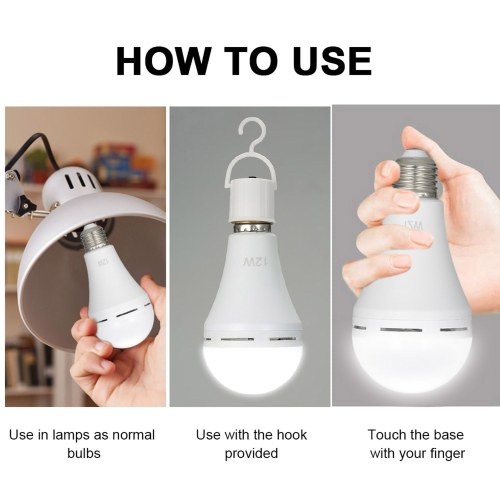 Rechargeable LED bulb, which works as regular LED bulb, when there is a power outage, it can be taken down from the socket and used as emergency light, so you will never be left in dark. In addition, it can be hung up, perfect for camping, garden, party, etc.