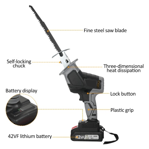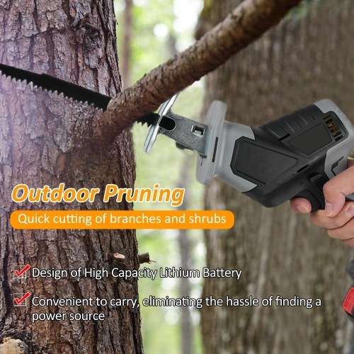 The reciprocating saw has powerful power and is equipped with a 21V 2.5ah rechargeable long-life battery. The cordless battery saw can be conveniently used in any scene, whether it is cutting wood, pipes, trees, shrubs, and metals, it can easily cope with it.