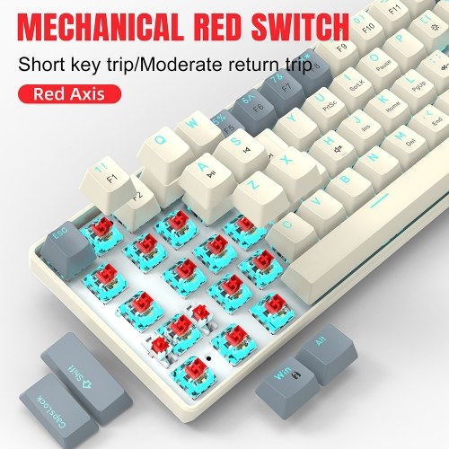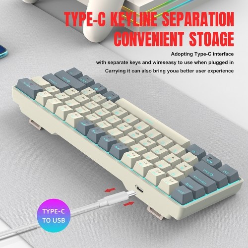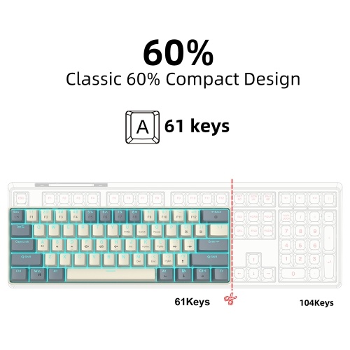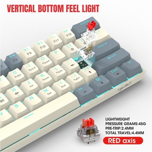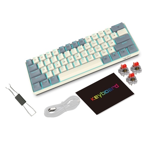 Experience seamless typing with our 61-key mechanical keyboard featuring red switches, USB 2.0, & 19 lighting modes. Perfect for gaming & office, with plug-in spare red switches & ergonomic design.