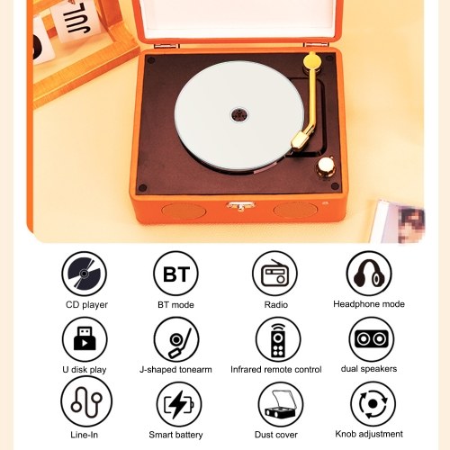 Multifunctional Player: Our CD player offers a variety of playback modes. You can listen to your favorite CDs, stream music via a BT connection, tune in to FM radio stations, play music from a USB drive, or connect external devices through the Line-in port