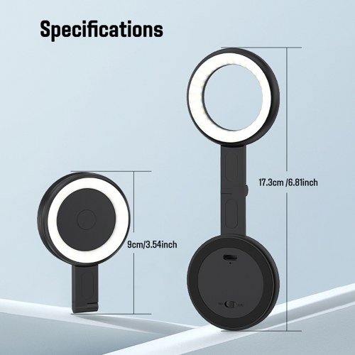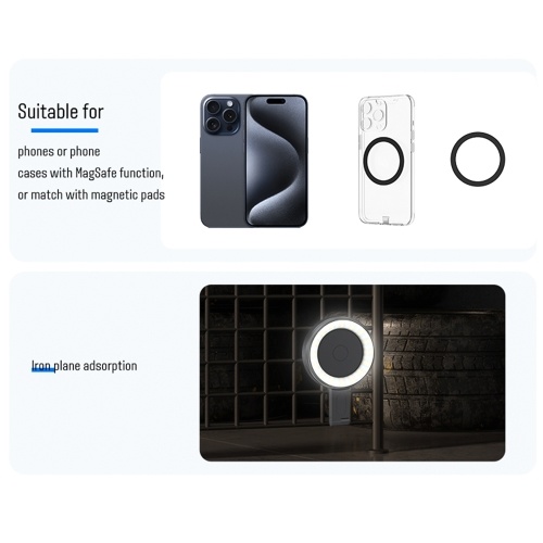 【Magnetic Phone Fill Light】The magnetic phone selfie light is specifically designed for iPhone 15/14/13/12 series smartphones, with other phone models requiring an external magnet ring (included) for compatibility.