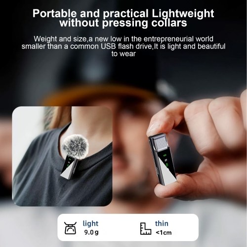 【Excellent Performance】: Our wireless clip-on microphone ensures a seamless user experience with its simple plug-and-play functionality. The receiver supports simultaneous charging and usage, allowing uninterrupted recording sessions. With dual displays and an aluminum alloy construction, this microphone offers a premium feel and outstanding durability.