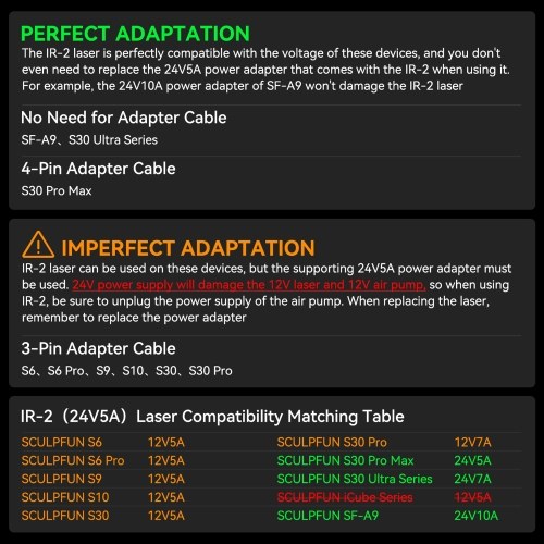 3. If you change back to the original 12V laser head, you need to replace the 24V adapter with a 12V adapter to avoid burning the original laser head.