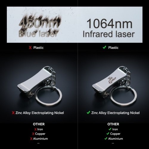 1- Engravable Materials: 1064nm infrared laser module is suitable for engraving on a wide variety of metals including gold, silver, platinum, copper, aluminium, zinc, iron, stainless steel, metal oxides and alloys, plastics, and Dark acrylics.