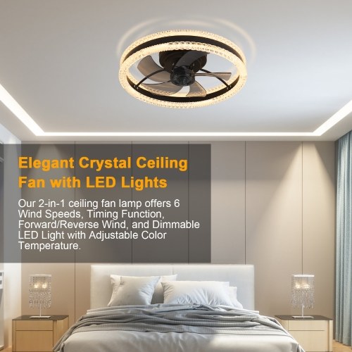 Elegant Crystal Ceiling Fan with LED Lights】Our 2-in-1 ceiling fan lamp offers 6 Wind Speeds, Timing Function, Forward/Reverse Wind, and Dimmable LED Light with Adjustable Color Temperature. It also includes a convenient One Button Night Light Mode. The sophisticated crystal design adds a touch of elegance and luxury to your space, making it a stunning focal point in the bedroom, living room, or study.