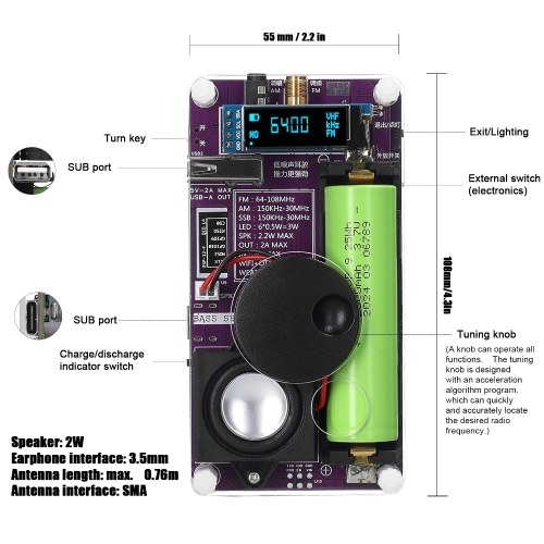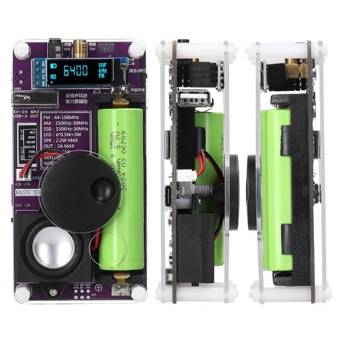 The circuit has strong anti-interference ability, using a highfidelity cavity speaker with rubber edges, with a sound power of 2W+, transparent and pleasant sound quality, and the external amplifier can be manually turned off. An independent low noise ear amplifier circuit is designed to compensate for the insufficient thrust of the Radio chip, making it more suitable for headphones and audio listening.