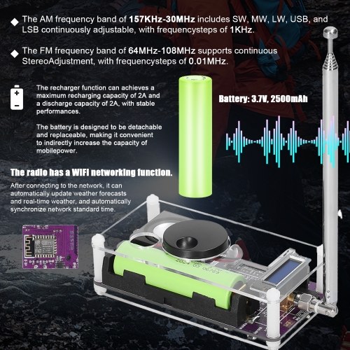 The AM frequency band of 157KHz-30MHz includes SW, MW, USB, and LSB continuously adjustable, with frequencysteps of 1KHz.