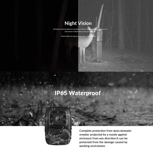 High Capacity Battery: The wearable body camera has good performance of long battery life due to 2650mAh Li-ion battery and low power consumption feature.