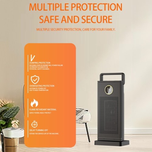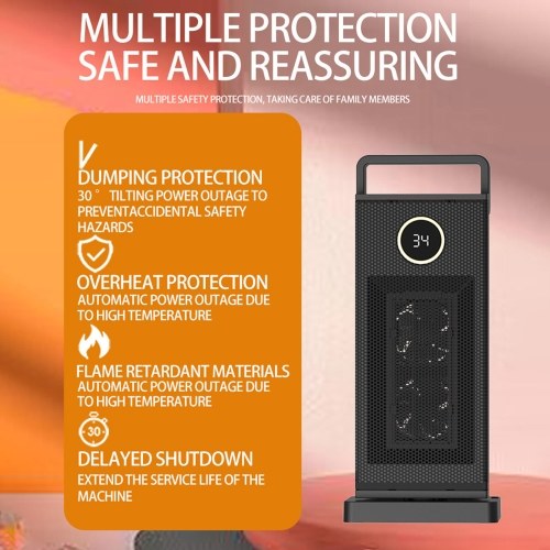 Tip-over Protection & Overheating Protection: The heater fan is equipped with a 30° tilt-over protection and overheat protection, ensuring that it automatically shuts off in the event of accidental tipping or overheating.