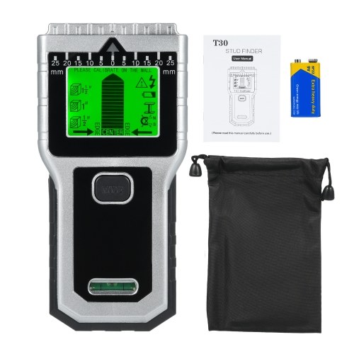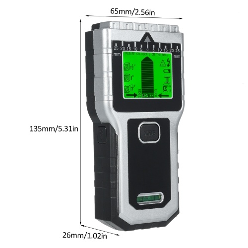 LCD Display & Sound Indication: This multifunctional wall scanner detector has a graphic LCD display which can indicate the scanning modes, calibration function and remaining battery indicator. The stud finder also features a backlight for use in the dark area. This stud finder wall detector provides a beep alert, which could remind you of the position of the stud. If there is a stud, metal or AC wire, you can know the position quickly and clearly.