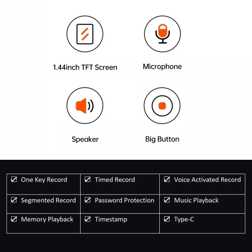 Intuitive and User-Friendly: Featuring a 1.44-inch large color screen, this digital voice recorder allows you to easily set the time and date and navigate through a clear and concise UI interface. With just one button, you can start recording instantly or take advantage of the voice-activated, timed, or segmented recording options for added convenience.