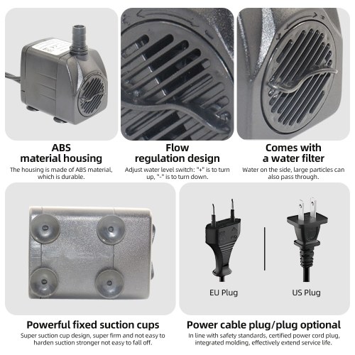 【Safe and Quiet】Electric water pump is safe to use with water and electricity separation technology. Ceramic bushing makes wear-resistant and ultra-quiet. Comes with suction cup base, which provides better stability and reduces noise. Provide a good environment for fish to survive.