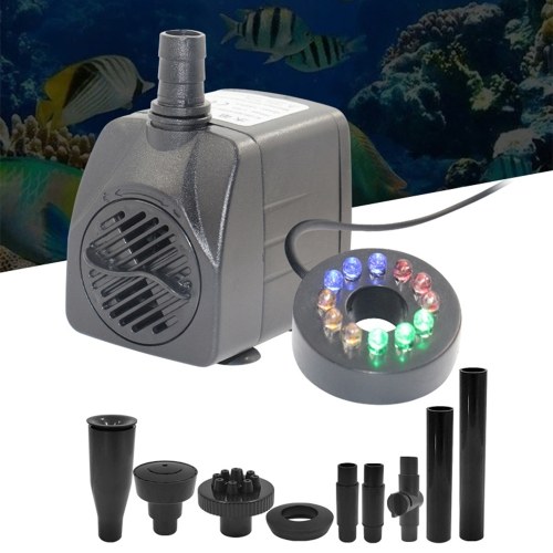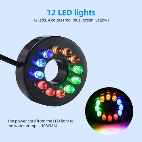 【Colorful Light】Water pump electric designed with 12 LED lights, 4 colors (red\blue\green\yellow) of colorful light. Charming decor for garden and aquarium, indoor and outside.