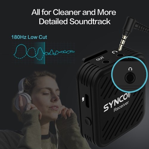 【Built-in Rechargeable Battery】Built-in 400mAh rechargeable lithium battery, can work up to 5 hours after a full charge. Supports charging while recording and charging transmitter and receiver at the same time via one charging cable. With indicator lights to show working status like power, charging, pairing and low cut function.