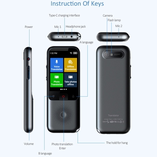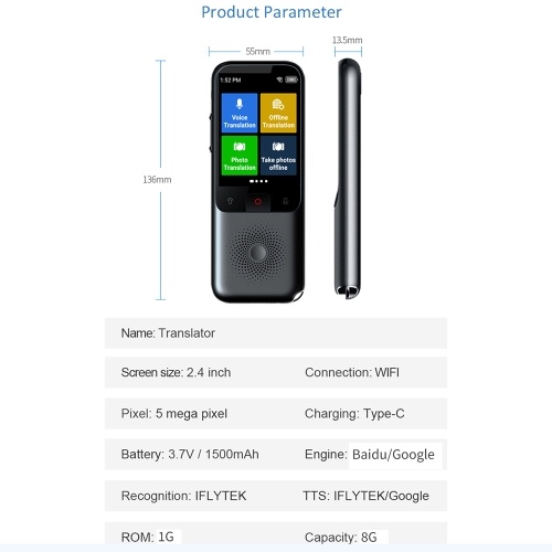 ▶ Long-lasting Battery Life: Stay connected on the go with our Translation Device's robust 1500mAh battery, and take advantage of an impressive using time of up to 5-7hours. Whether you're travelling or attending lengthy meetings, this device ensures uninterrupted use throughout the day. All Aluminum alloy shell and adopts 2.4 inches HD screen, clear to check every translate contents.