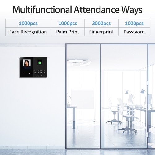 ✅ Multi-function 4-in-1 use: This time attendance device supports multiple employee identification methods, including 1000pcs face recognition, 1000pcs palm print, 3000pcs fingerprint, and 1000pcs password. With the capacity to store 160,000 records, it can meet the needs of various organizations.