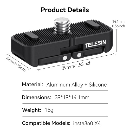 Quick Release Adapter Base for X4: Specially designed for X4 camera, this quick release adapter base adopts 1/4 inch screw and snap-on installation design, no fear of swinging, ensuring stability with the camera