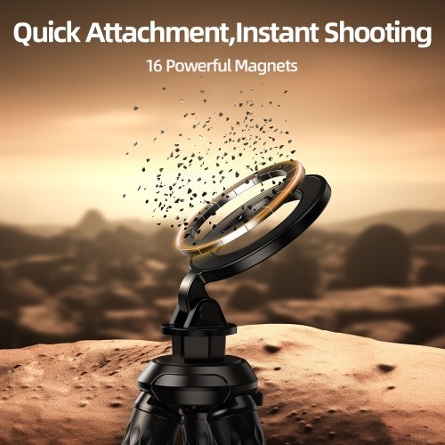【Adjust Angles for Flexible Use】The the magnetic phone mount can be flexibly rotated at multiple angles, suitable for horizontal, vertical, low angle and overhead video recording.
